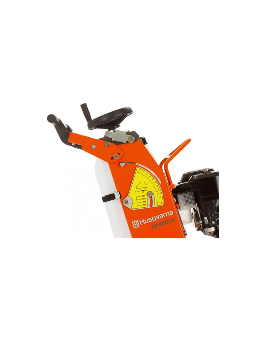 Швонарезчик Husqvarna FS 400 LV оснащен бензиновым двигателем объемом 389 см³ с одним цилиндром и мощностью 8,7 кВт. Устройство имеет максимальную глубину реза 189 мм и оснащено защитным кожухом режущего диска на болтах. Уровень вибрации рукоятки при работе составляет 3,5 м/с2. Для улавливания пыли оборудование оснащено сухим циклонным сдвоенным воздушным фильтром. Инструмент перемещается путем толкания.